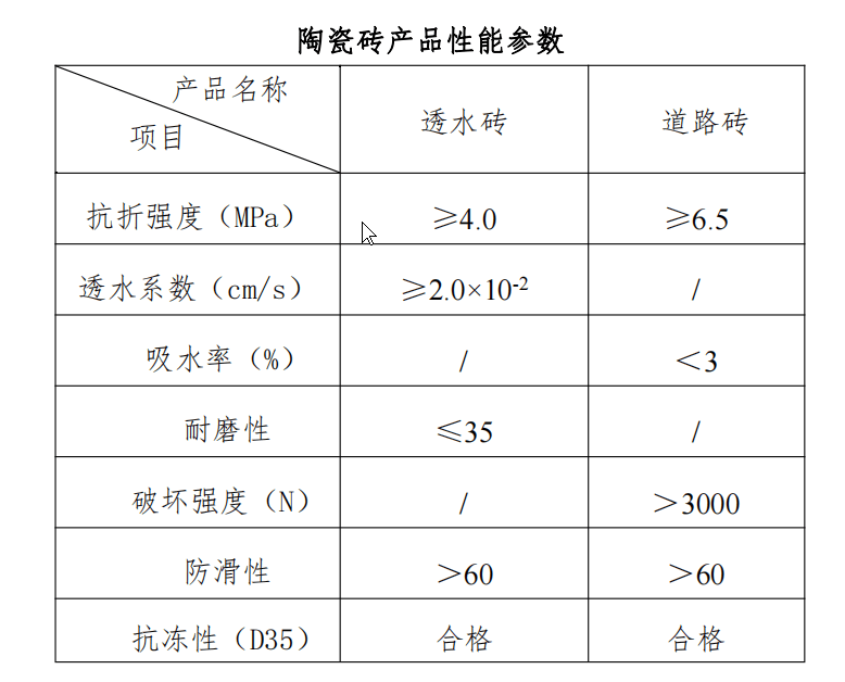 參考標準 GB/T 25993-2010《透水路面磚和透水路面板》和 GB/T4100-2015《陶瓷磚》。